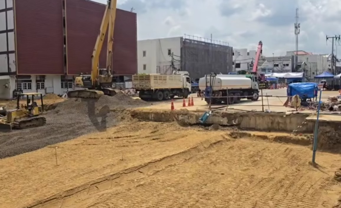 ผู้รับจ้างทำการถมทรายเพื่อปรับระดับพื้นผิวแล้วเสร็จเป็นที่เรียบร้อย โดยตั้งแต่วันที่ 14-18 ตุลาคม 2568 ถมทรายไปแล้วทั้งสิ้นประมาณ 9,000 ลูกบาศก์เมตร และได้เริ่มทำการปรับระดับพื้นที่โดยการถมหินคลุกไปแล้วประมาณ 175 ลูกบาศก์เมตร