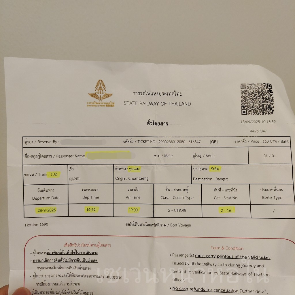 สถานีที่ขึ้น : สถานีชุมแสง (เวลารถออก 14.59 น.)
