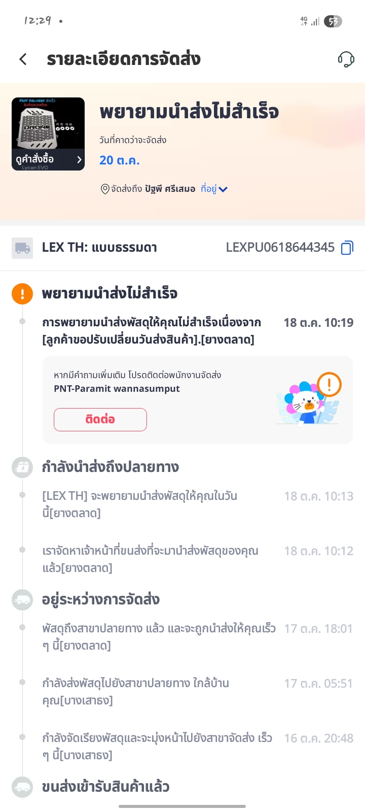 เลื่อนวันส่งด้วยเบอร์ขนส่งก็ติดต่อไม่ได้เลย