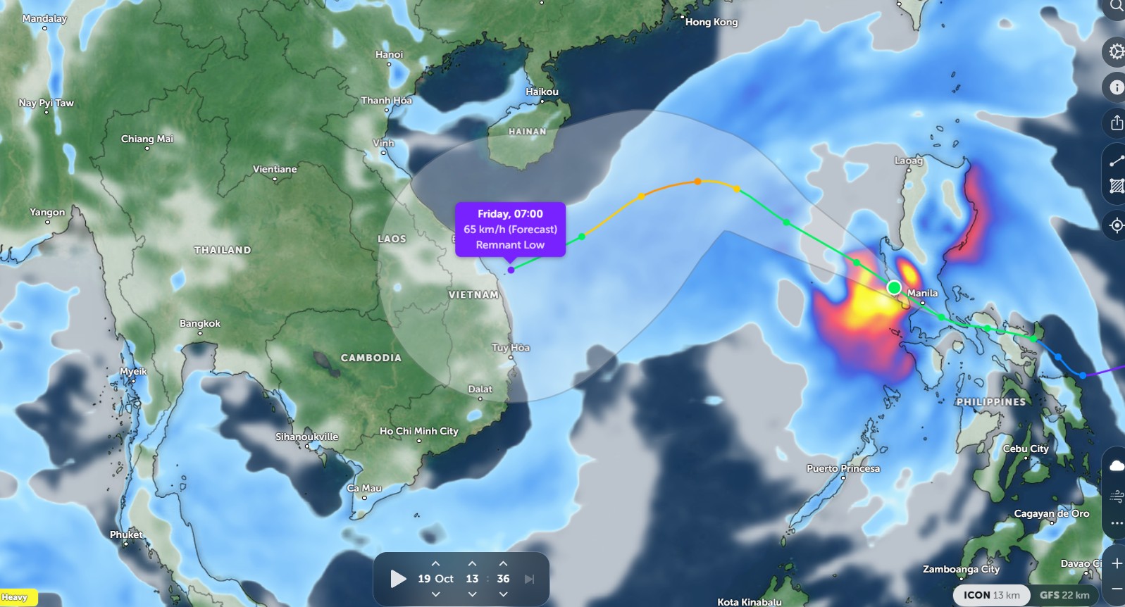 แนวโน้มต่อไปช่วงวันที่ 21 – 23 ตุลาคม 2568 พายุนี้จะเคลื่อนเข้าใกล้ตอนใต้ของเกาะไหหลำ ประเทศจีนและชายฝั่งประเทศเวียดนามตอนกลาง