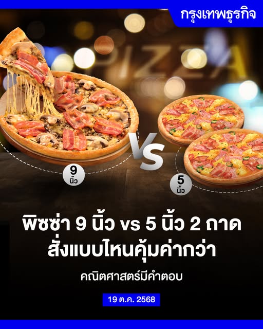 พิซซ่า 9 นิ้ว vs 5 นิ้ว 2 ถาด สั่งแบบไหนคุ้มค่ากว่า คณิตศาสตร์มีคำตอบ