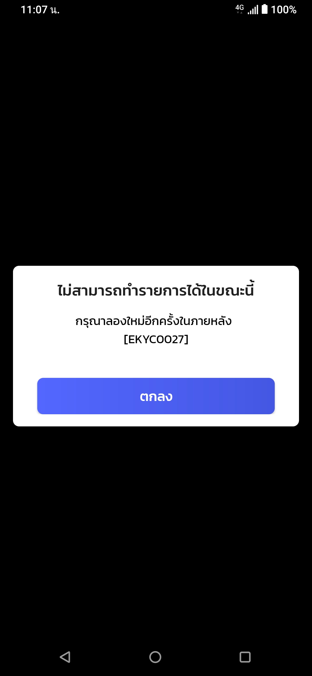 ลงทะเบียนเป๋าตังแล้วขึ้นโค้ด EKYC0027