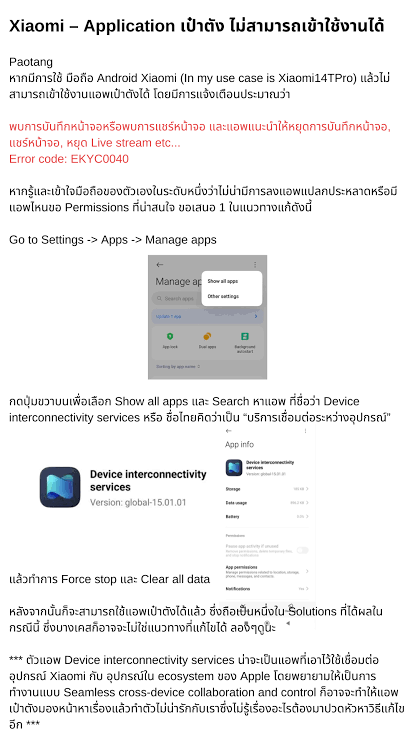 แอปเป๋าตัง ขึ้น ERROR CODE EKYC0027 ในpoco ลองเข้าในiPhone แล้วเข้าได้แต่เข้าในpoco ไม่ได้เลยลองทำตามทวิธีที่หาได้แต่ก็แก้ไม่ได้ จนลองปิดตามนี้ เผื่อเป็นแนวทางค่ะ ของแอปเป๋าตังค์นะคะ