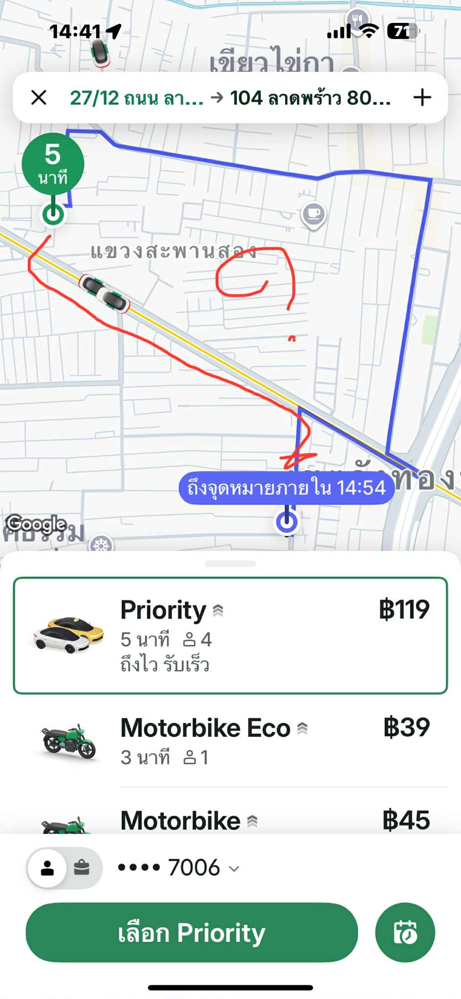 การใช้บริการ Bolt หรือ Grab เส้นทาง ลาดพร้าว ซอย 55/2 ทำไมถึงไม่แสดงเส้นทางออก ถนนลาดพร้าว