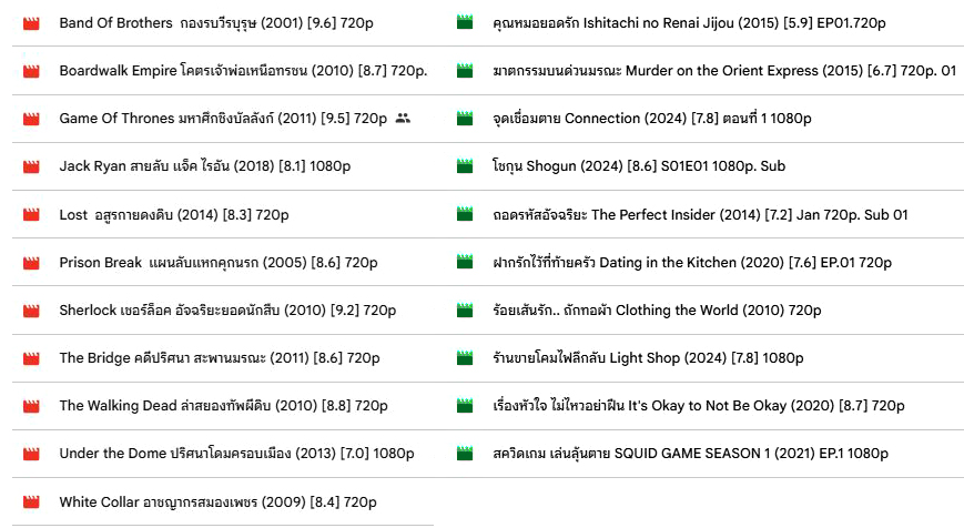 ซ้ายสีแดง 10 เรื่อง เสียงอังกฤษ มีเสียงสวีดิช 1 เรื่อง มีซับไทย