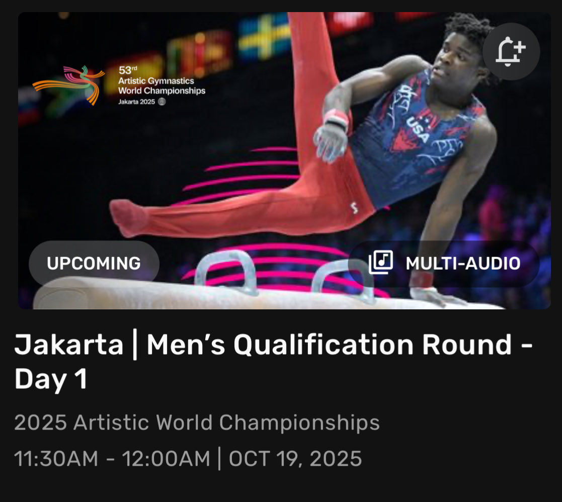 สำหรับรายการ 53rd FIG Artistic Gymnastics World Championships 2025 หรือการแข่งขันกีฬายิมนาสติกสากลชิงแชมป์โลกปี 2025 ณ กรุงจากาตาร์ ประเทศอินโดนีเซีย ได้เปิดฉากขึ้นแล้ว โดยรายการนี้จะมีการแข่งขันขึ้นระหว่างวันที่ 19 - 25 ตุลาคม 2568 ซึ่งตอนนี้ถือเป็นข่าวดีสำหรับแฟนกีฬายิมนาสติกทั่วโลก เมื่อช่องกีฬาดังของยุโรปอย่าง EUROVISION SPORT ประกาศจะทำการถ่ายทอดสดฟรี (ไม่มีค่าใช้จ่ายใดๆ) ผ่านทางช่องโดยตรง โดยทุกคนสามารถดาวน์โหลดแอป EUROVISION SPORT ได้ทางมือถือแบบ Androids และ IOS ทั้งคู่ รวมทั้งสามารถดาวน์โหลดลงทีวีแบบ Androids หรือ Smart TV ได้ทั้งสองประเภท ซึ่งเมื่อดาวน์โหลดแอปมาแล้ว ก็สามารถดูกีฬาผ่านทางช่อง EUROVISION SPORT ได้เลย (มีหลายกีฬา) แต่ก็ต้องทำการ Registration หรือลงทะเบียนก่อนจึงจะสามารถดูได้ตลอดครับ (โดยการลงทะเบียนนั้นทำได้โดยการตั้ง email และ password ขึ้นมา ซึ่ง email จะต้องเป็น email ที่เราเคยมีอยู่แล้ว ส่วน password นั้นจะต้องมีไม่ต่ำกว่า 8 หลัก) นับว่าเป็นข่าวดีสำหรับแฟนกีฬายิมนาสติกทั่วโลกครับ 😊