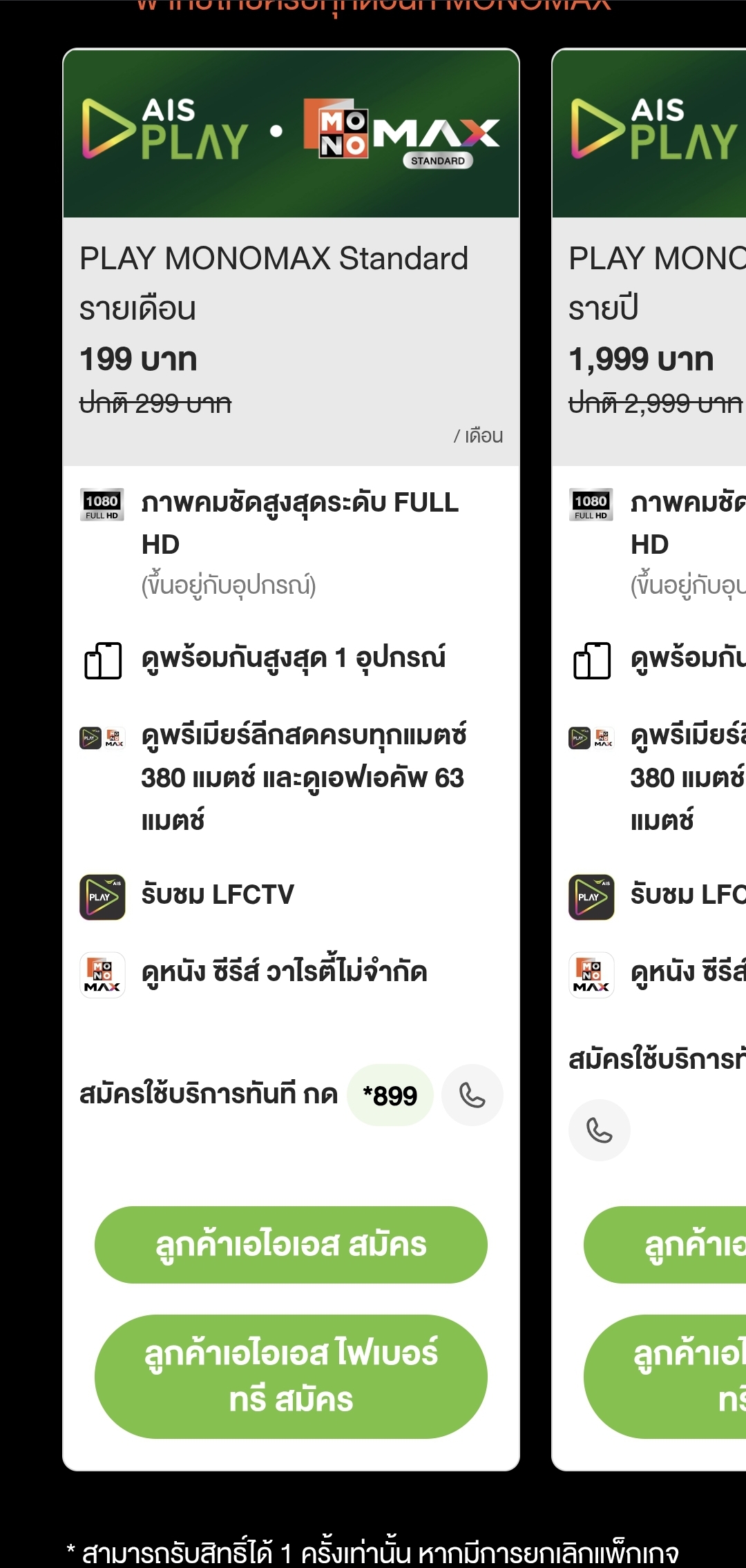 สวัสดีค่ะ เราสมัคร PLAY MONOMAX Standard 199บาท ไป จริงๆเราลืมกดยกเลิก และได้มีการตัดเงินอัตโนมัติจากเบอร์เราไปค่ะ หลังจากนั้น เราเข้าไปเช็คในแอปโมโน ปรากฏว่าหมดอายุก่อนกำหนดและการใช้งานติดต่อเอไอเอสก