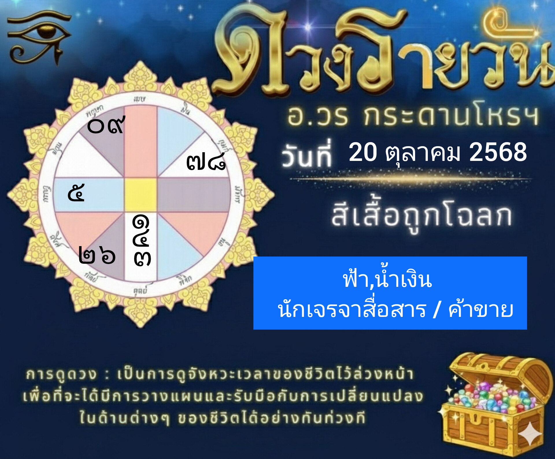 Ψ ☀ ดวงวันนี้ 20 ตุลาคม พ.ศ.2568 โดย อ.วร กระดานโหรฯ ☀ 卐