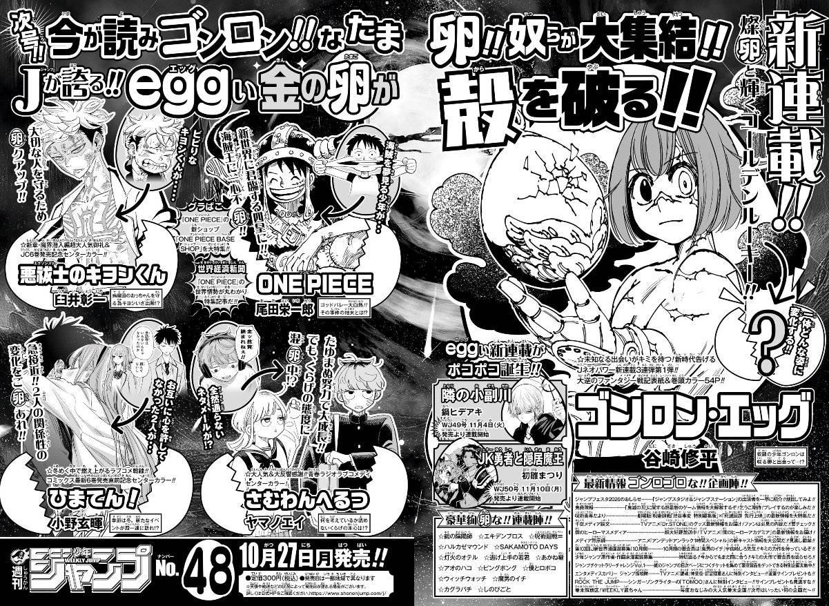 - จัมป์ฉบับนี้จะอัพลงM+ในวันที่ 19 ตุลาคม เวลา 22.00 น. https://mangaplus.shueisha.co.jp/updates