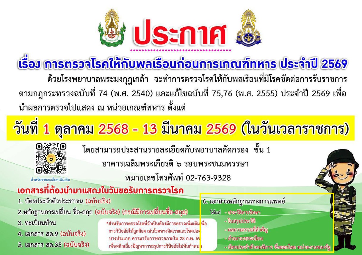 ขอใบรับรองแพทย์เกณฑ์ทหาร เพศสภาพไม่ตรงเพศกำเนิด