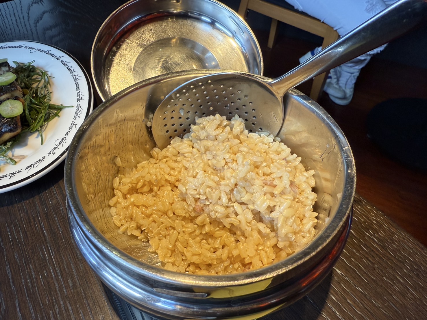ข้ามีออกอมเหลืองเม็ดป้อมคล้ายข้าวญี่ปุ่นเหนียวๆ มีครีมดูคล้ายหุงใส่กระทิหรือชีสใน รีซอตโต้ แต่เค้าบอกหุงปกติเลย เป็นยางข้าว ต้องบอกว่าเป็นข้าวที่อร่อย แบบกินข้าวปล่าว กับแม็กกี้ หรือพริกน้ำปลาก้อฟินเลย
