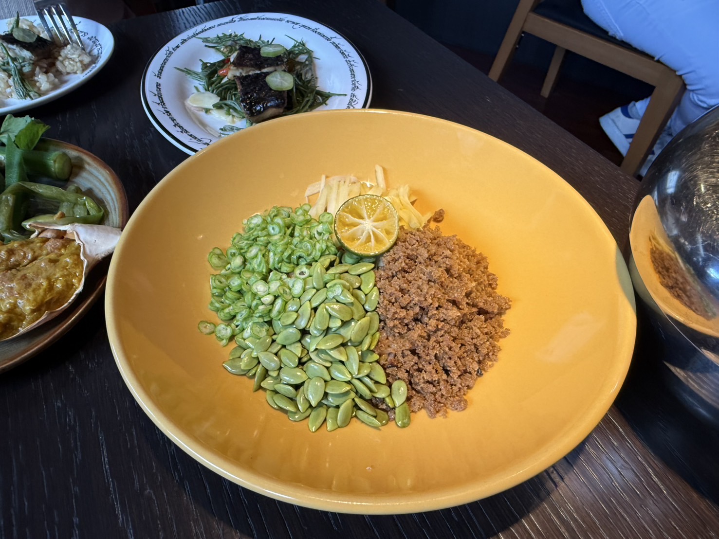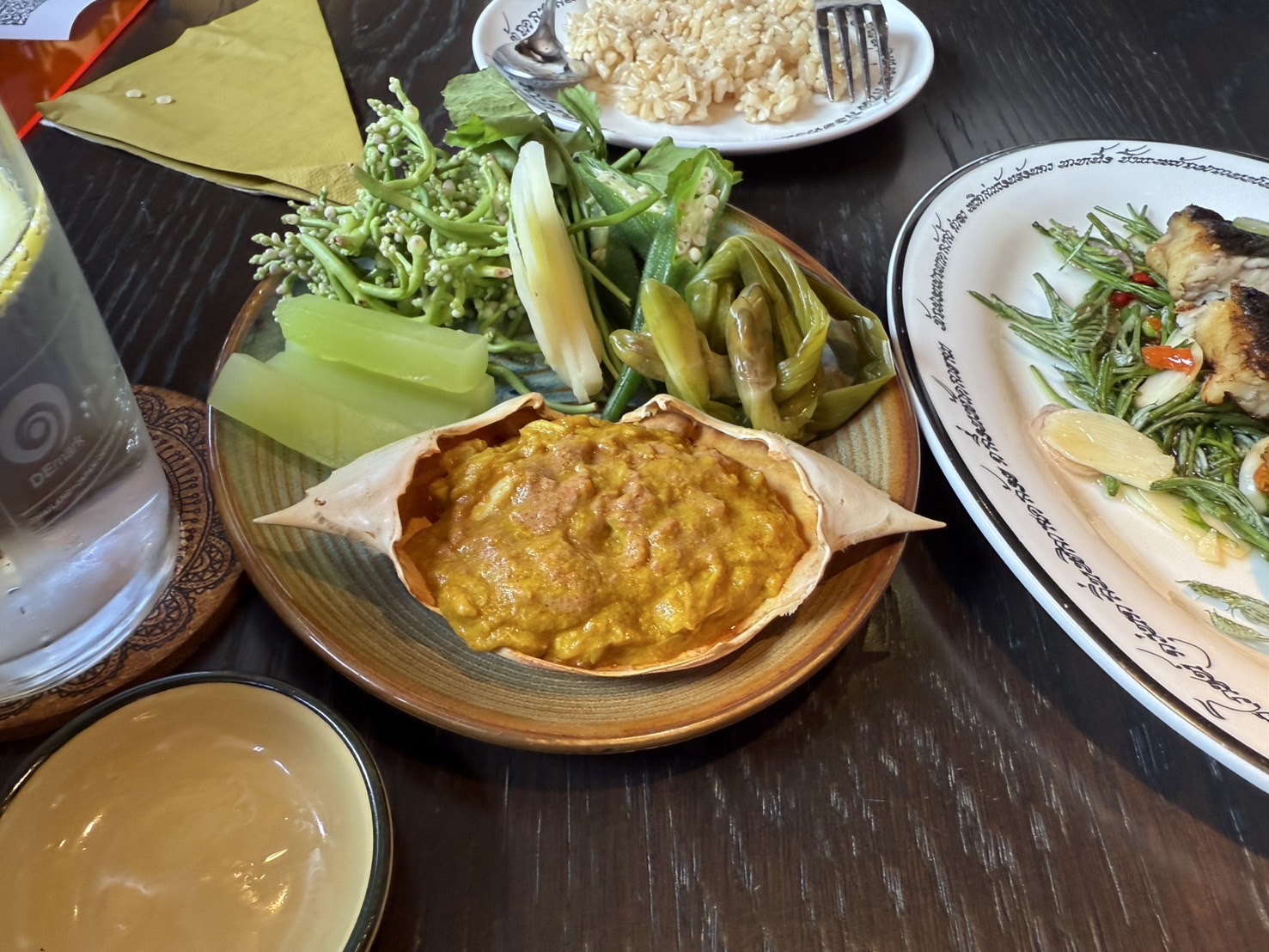 ชุดน้ำพริกปู เป็นน้ำพริกไข่ปูมันปูเบาๆ เสริฟมากับผักดิบ ดอกผักปัง ใบบัวบก ขมิ้นอ่อน กระเจี๊ยบ ผักต้ม ผักขอเติมได้ตลอด (แต่น้ำพริกมันน้อย ผักที่ให้มาหมดพอดี ชอบดอกผักปังที่คล้ายสะเดา อวบๆ เป็นพิเศษ)