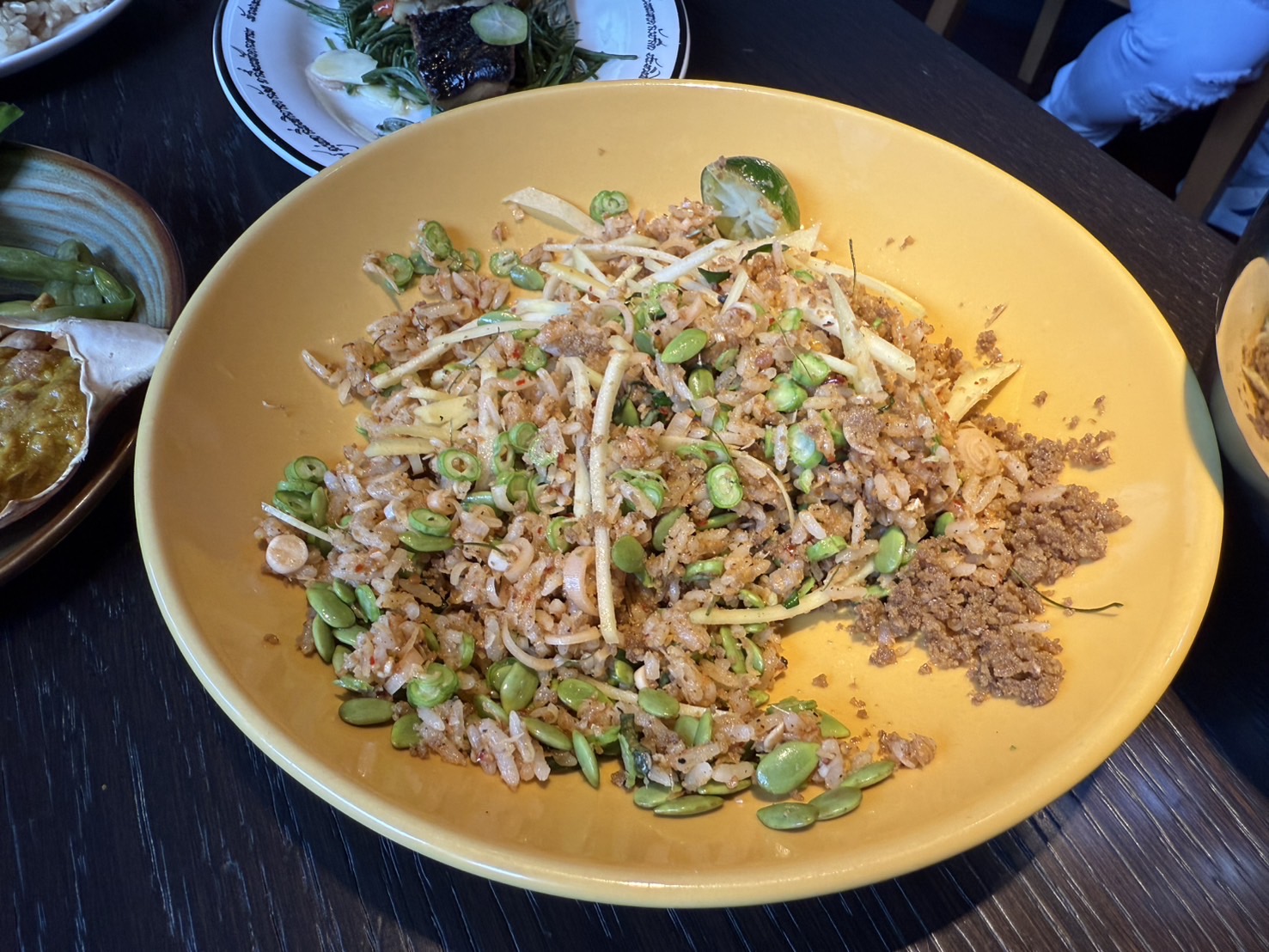 อีกจานเป็นข้าวยำ 280++ เป็นข้าว เสริฟมากับเม็ดกระถินถั่วฝักยาวหั่นซอยบาง มะม่วงสับ ปลาดุกฟู บีบส้มจีดเพิ่มความเปรี้ยว รสชาติอ่อนๆ จะฟิลคล้ายกินข้าวคลุกกระปิ แต่รสชาติมันเบา ผมชอบข้าวคลุกกะปิมากกว่า 5555