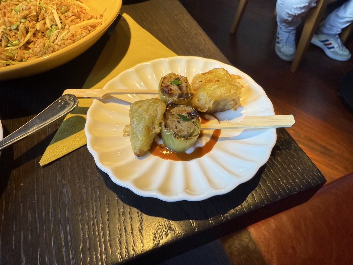 พริกหยวกนางลอย เป็นพริกหยวกยัดไส้ทอด 180++ เมนูนี้อร่อย แต่มาแค่สองไม้คนล่ะคำ 555