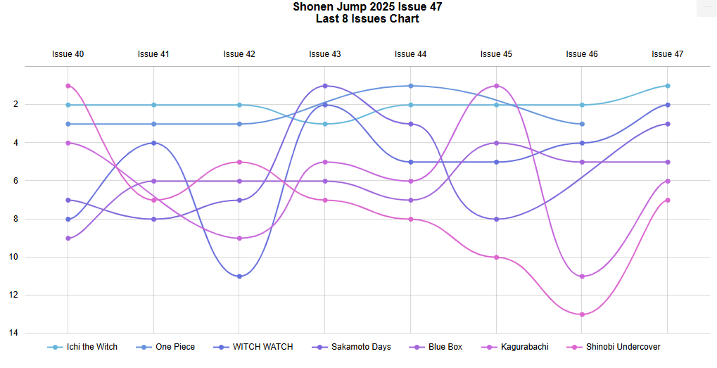รายงานผลจัดอับดับและการเคลื่อนไหวของ โชเน็นจัมป์ตั้งแต่เล่มที่ 47/2025 ช่วง 8 สัปดาห์ที่ผ่านมา