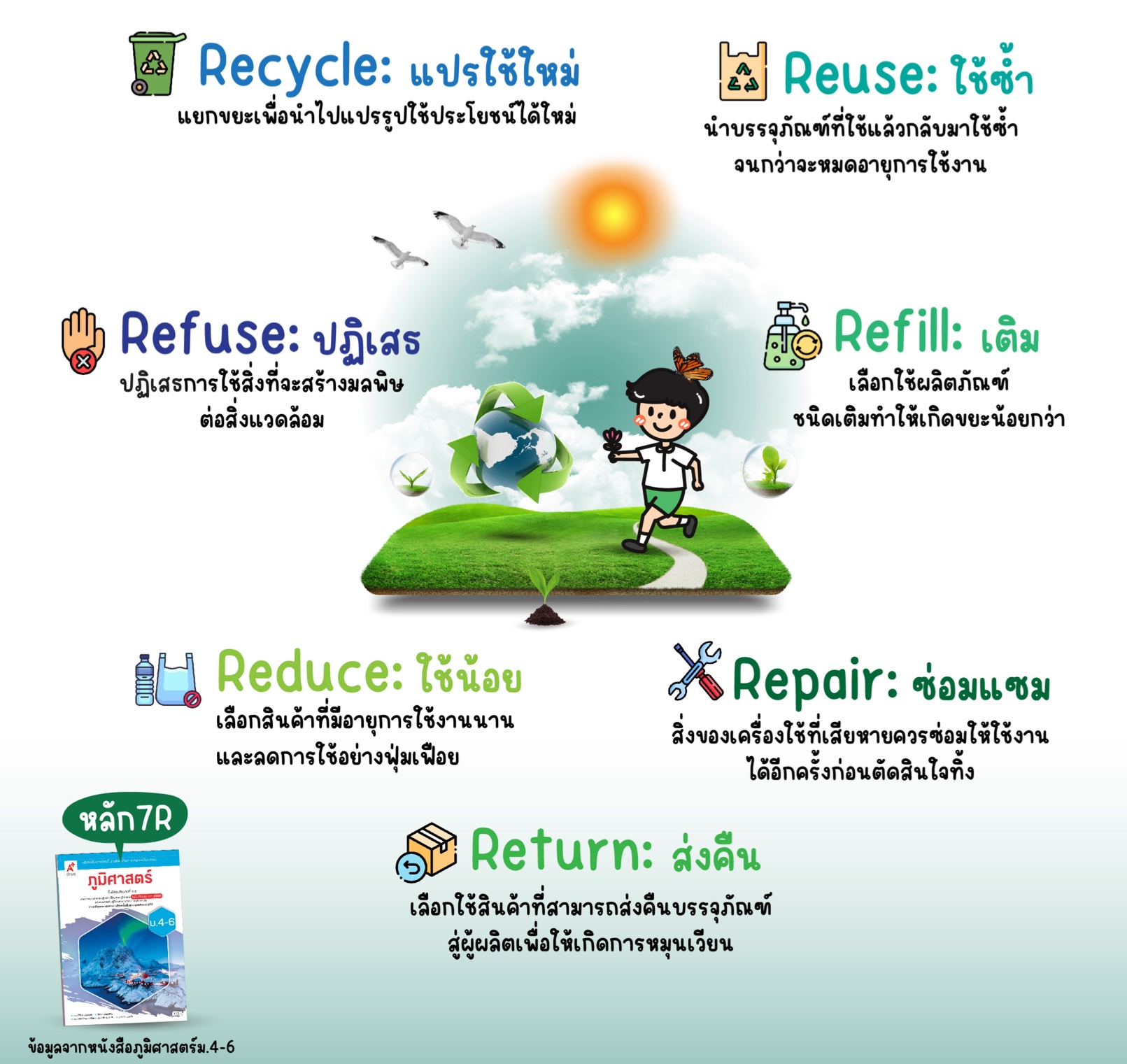 • วงยาว (Long Loops, R7–R9): Recycle, Recover (energy), Re-mine (นำกลับมาจากแหล่งฝังกลบ)