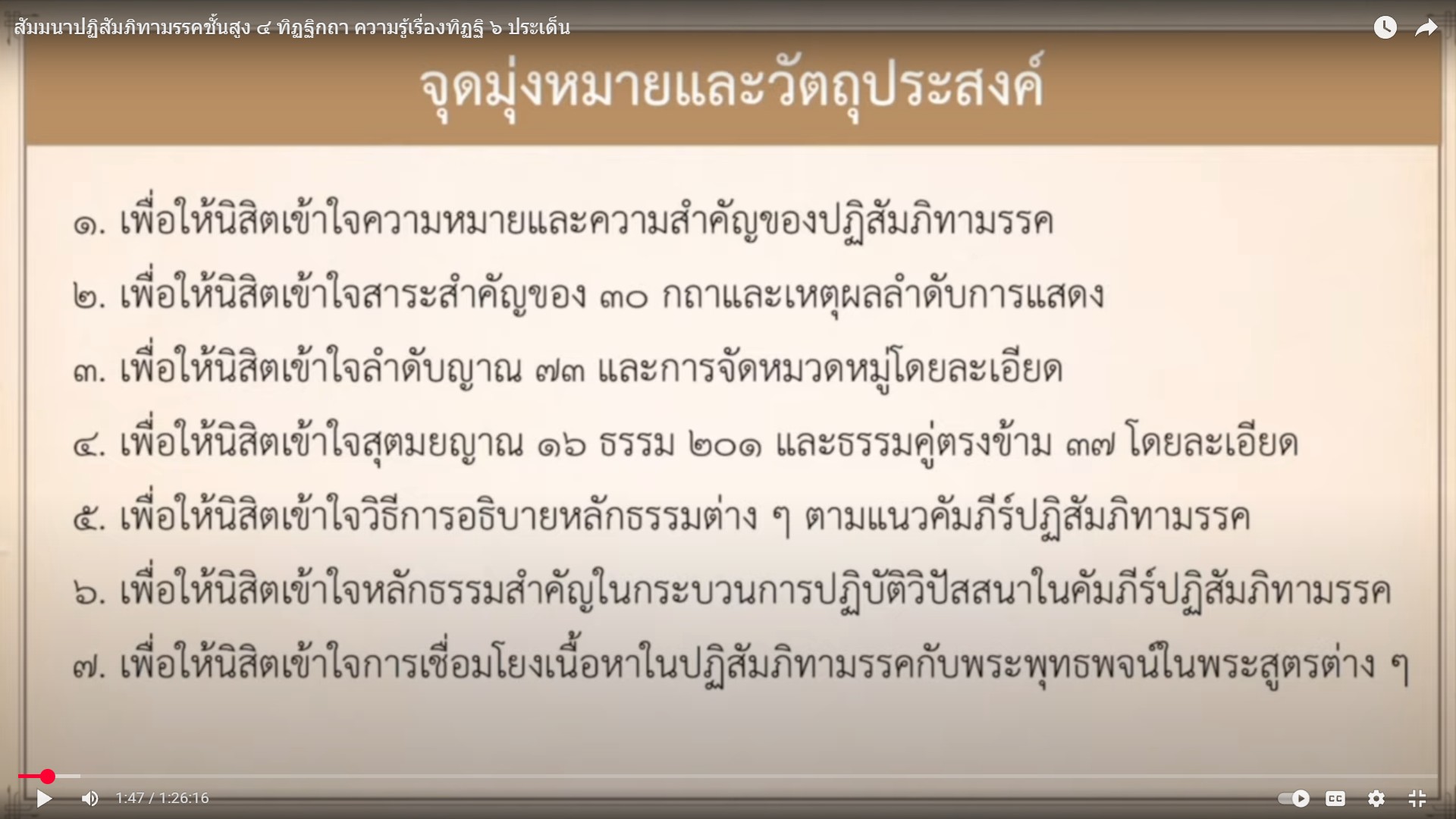 สัมมนาปฏิสัมภิทามรรคชั้นสูง ๔ ทิฏฐิกถา ความรู้เรื่องทิฏฐิ ๖ ประเด็น