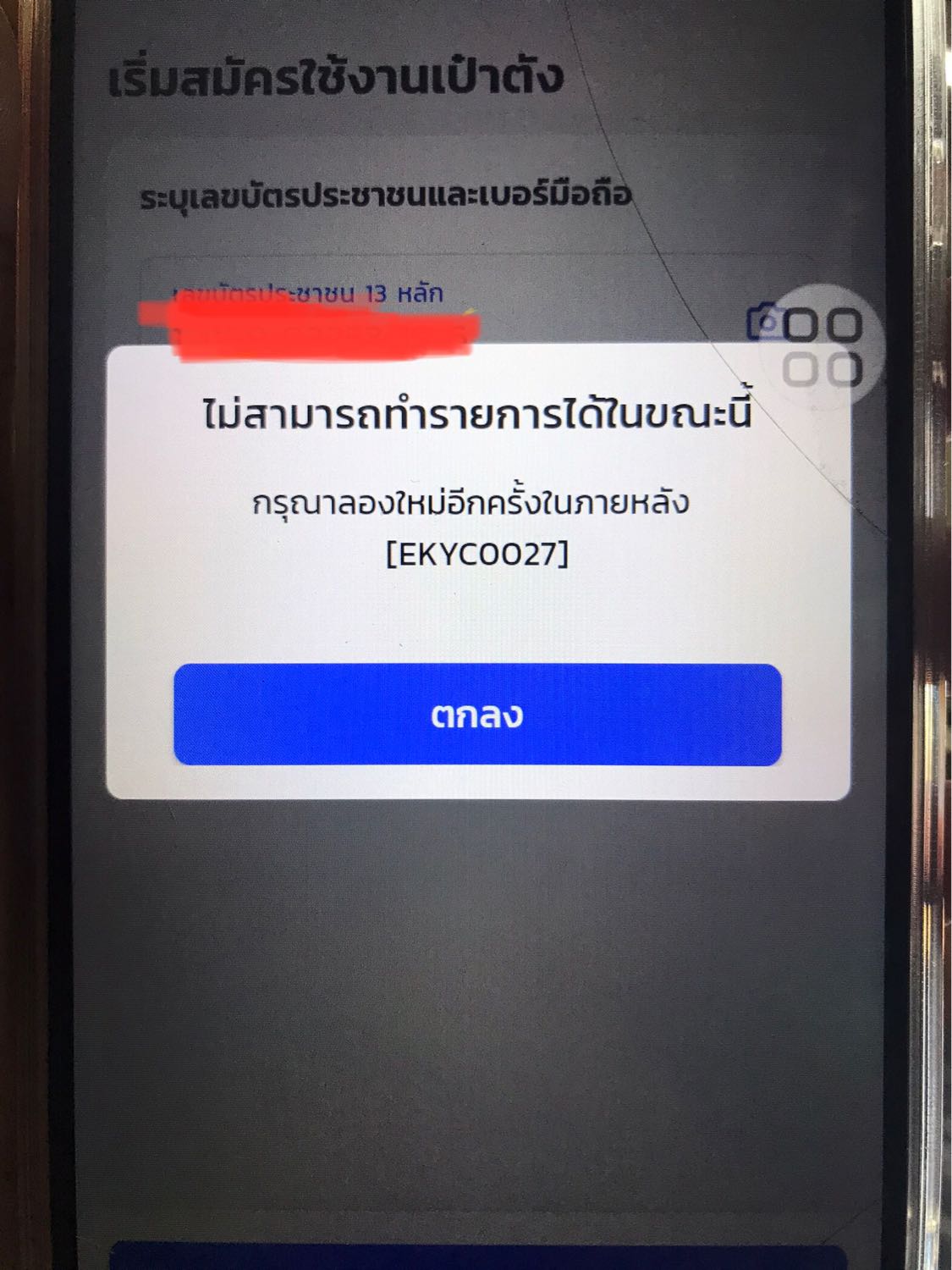ได้ทำการสมัครเข้าแอพเป๋าตังแต่ไม่สามารถใช้งานได้ ขึ้นว่าEKY0027