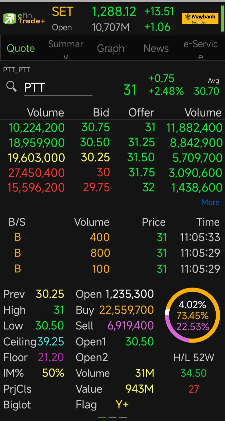PTT เช้านี้มีแรงซื้อเยอะมากเลย