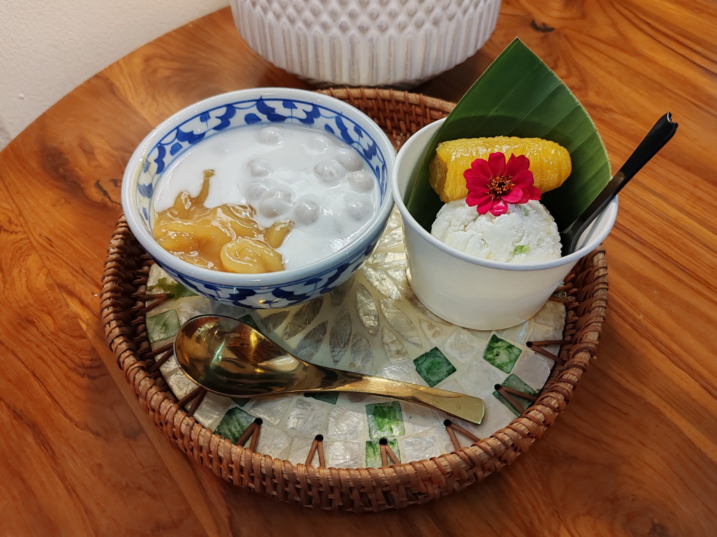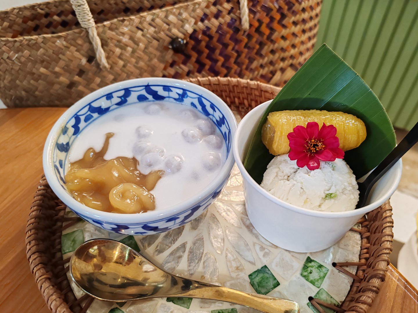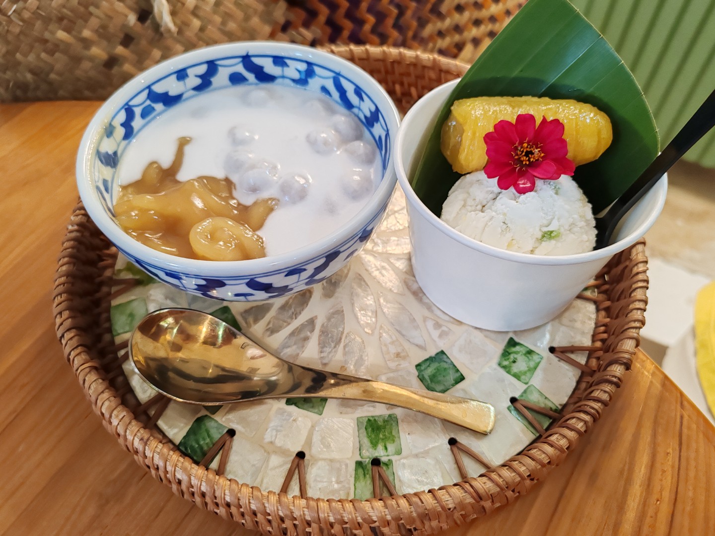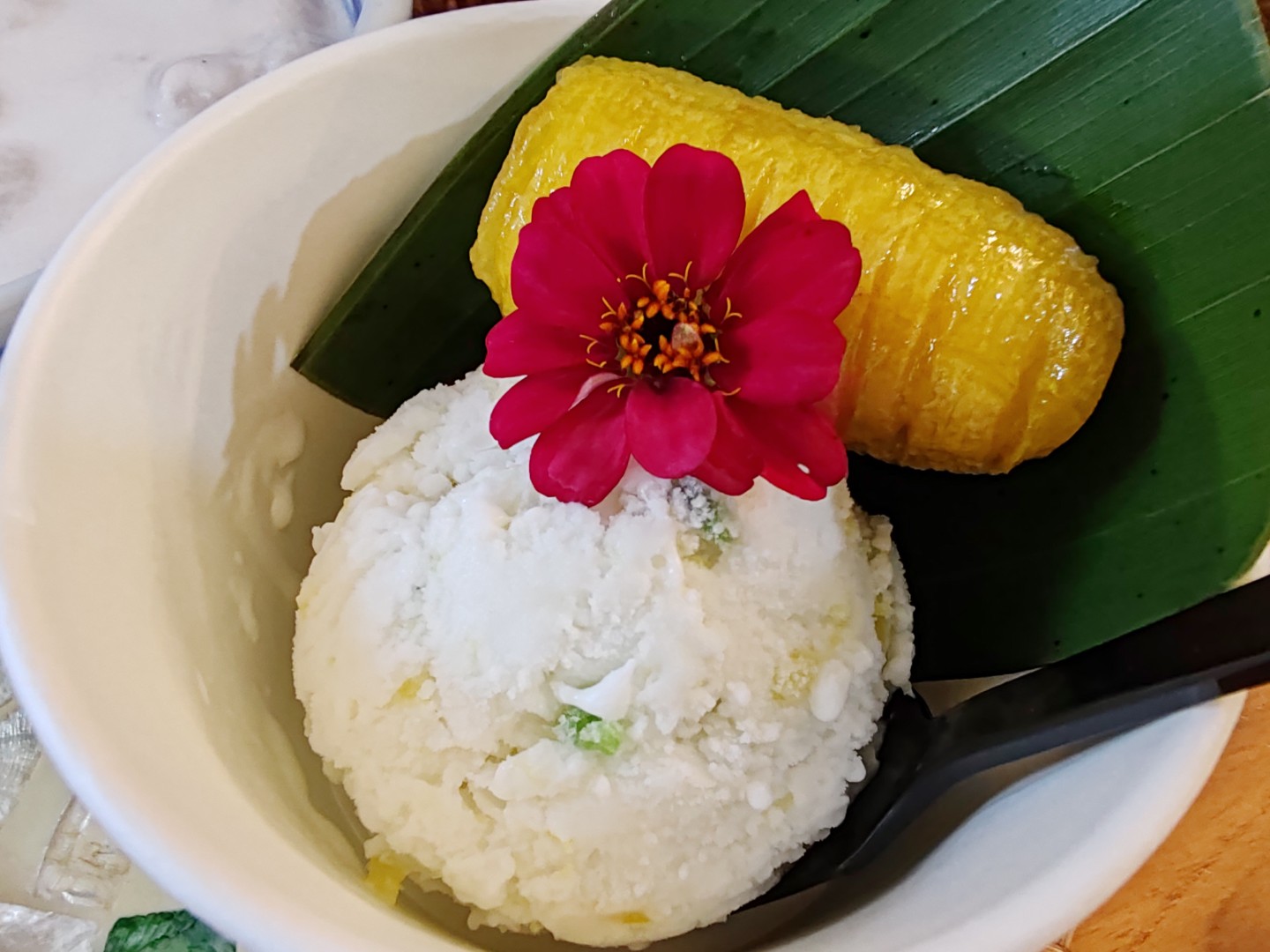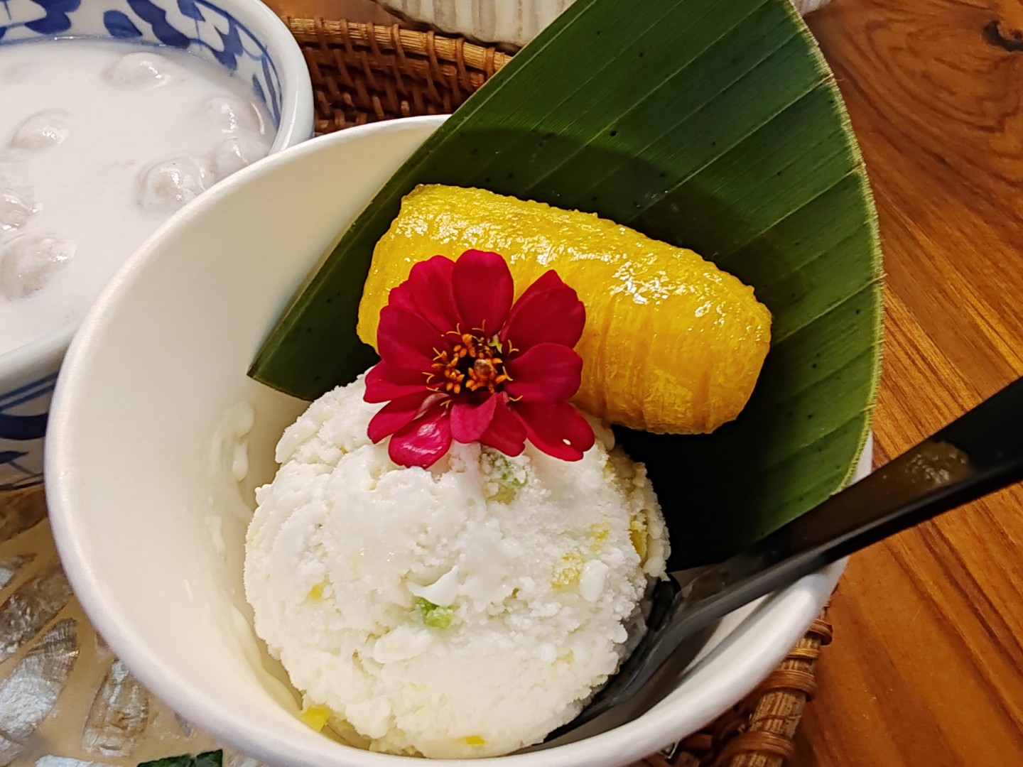 ไอศกรีมกะทิรวมมิตร แปะด้วยกล้วยไข่เชื่อม เหลืองทอง มากกกก