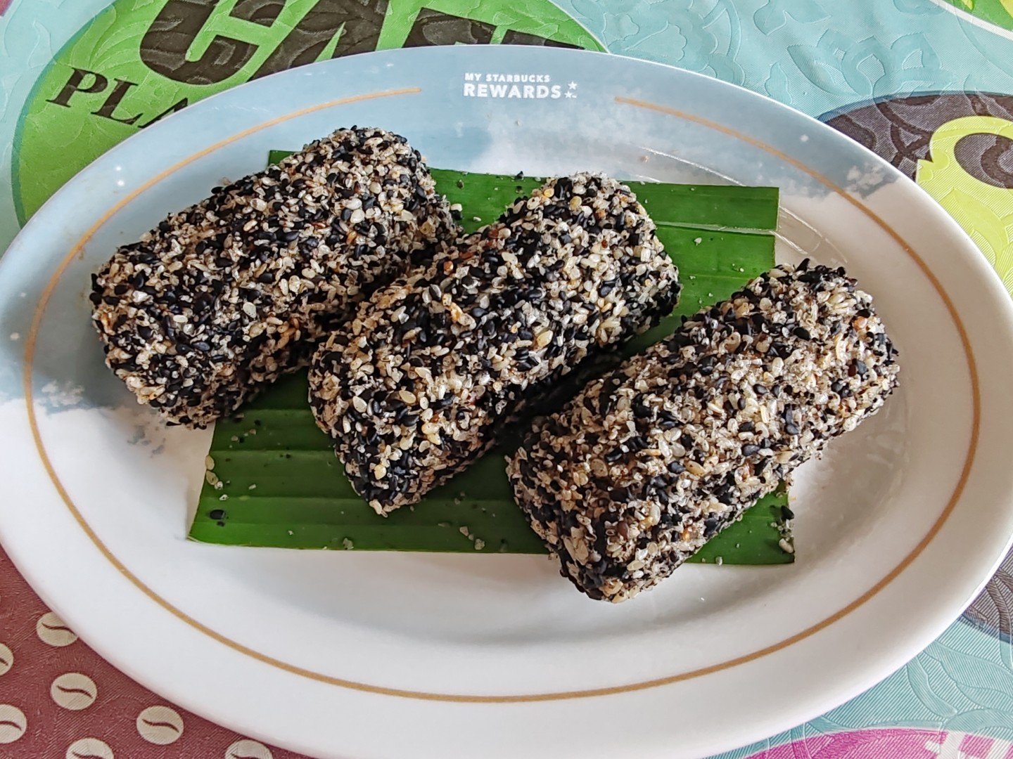 ทำจากแป้งข้าวเหนียว คลุกทั้งงาขาว