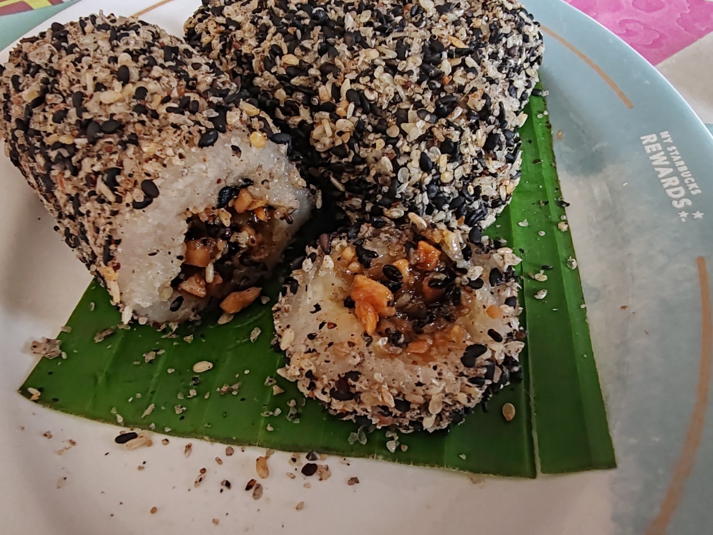 ใส้ข้างในจะเป็นถั่วลิสง ตำผสมกับ งาขาว งาดำ กับน้ำตาลปี๊บ หนุบหนับ หอมงามากๆครับ