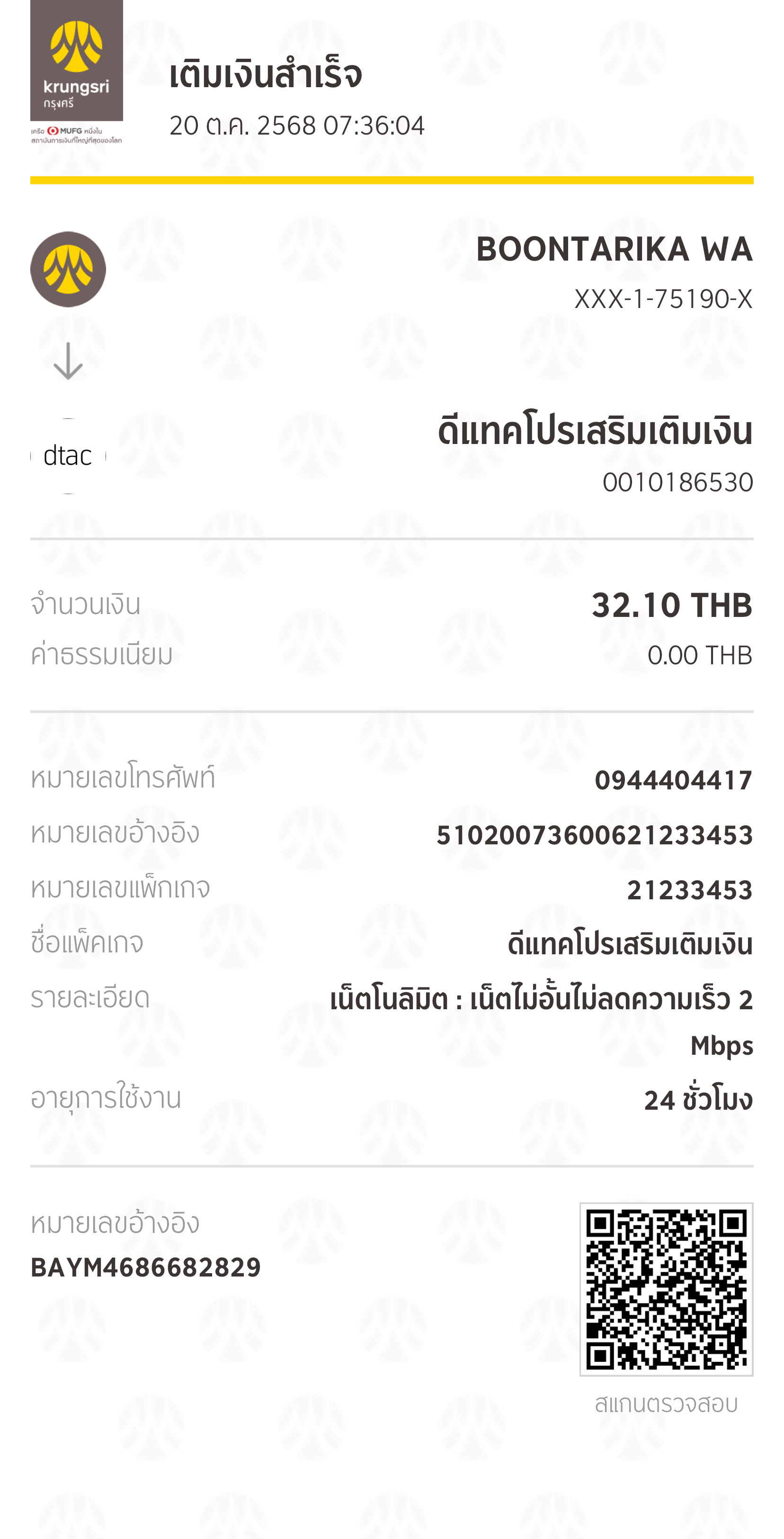 คือเราสมัครเน็ตให้แม่ โดยการเติมเงินเข้าแอปก่อนจะสมัคร แล้วเราไม่รู้ว่ามีข้อความแจ้งไปที่เครื่องแม่ว่าระบบต่อเน็ตอัตโนมัติมัติ1อาทิตย์ โทษความสำเพ้าของตัวเองด้วยแหละที่ไม่ได้อ่านในรายการแพ็กเกจที่ใช้อ