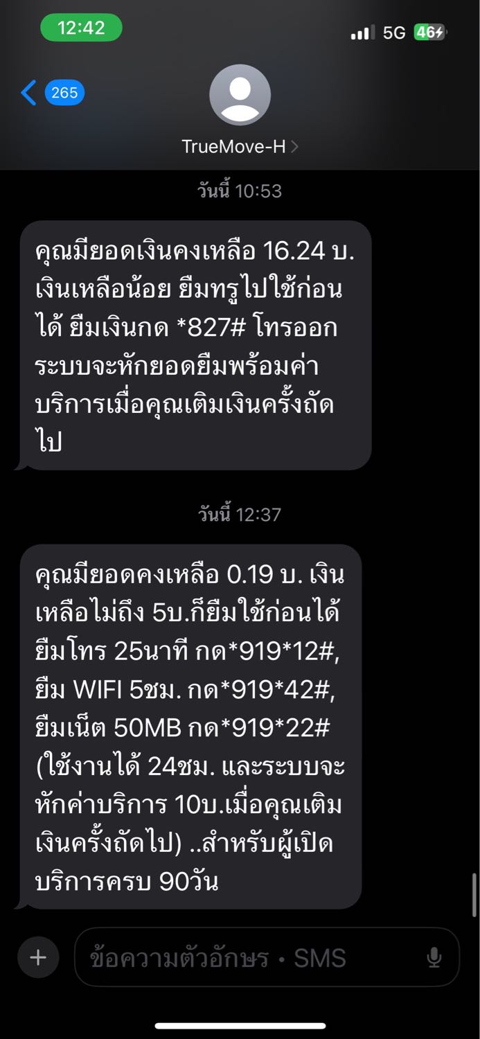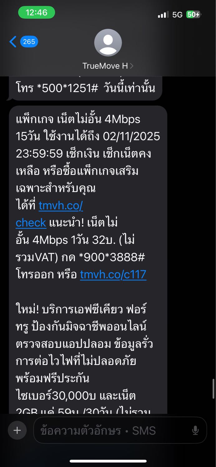 มี sms true แจ้งให้เติมเงิน 30 /9/68 แพคเกจ เน็ตไม่อั้น 4Mbps +Wifi+โทรฟรี ทุกเครือข่าย นาน 30 เมื่อเช้าเติมเงินเข้าไปแล้ว แต่ระบบไม่หักยอดเงิน ทำให้ใช้บริการแพคเกจนี้ไม่ได้ และช่วยยกเลิก บริการข้อคว
