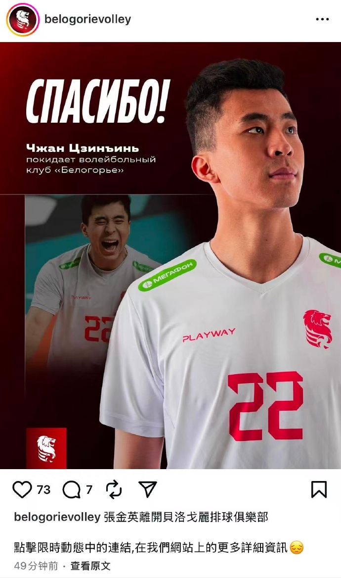 ตอนนี้เรากำลังหาผู้เล่นคนใหม่มาทดแทนในตำแหน่งนี้” สโมสรวอลเลย์บอล “Belogorie” ขอขอบคุณ จาง จิ่งอิ่น สำหรับผลงานอันยิ่งใหญ่ที่เขามอบให้แก่ทีม และขอให้เขาหายดีและกลับมาในเร็ววัน 💪🏐