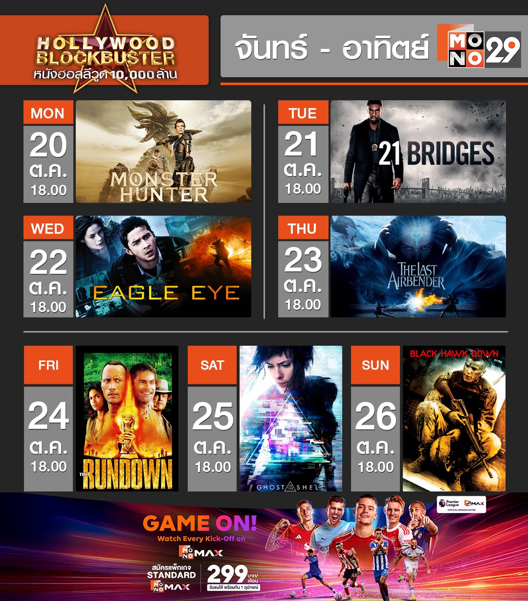 Hollywood Blockbuster หนังฮอลลีวูด 10,000 ล้าน วันที่ 20 - 26 ตุลาคม เวลา 18.00 น. ทางช่อง MONO29