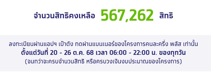 https://www.facebook.com/share/p/17TteZ4gUB/?mibextid=wwXIfr จากกรณีที่ รัฐบาลเปิดให้ประชาชนลงทะเบียนโครงการ “คนละครึ่งพลัส” รวม 20 ล้านสิทธิ แบ่งเป็น 2 กลุ่มคือ กลุ่มผู้ได้รับสิทธิ 2,4