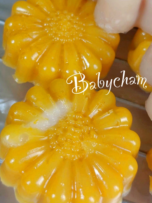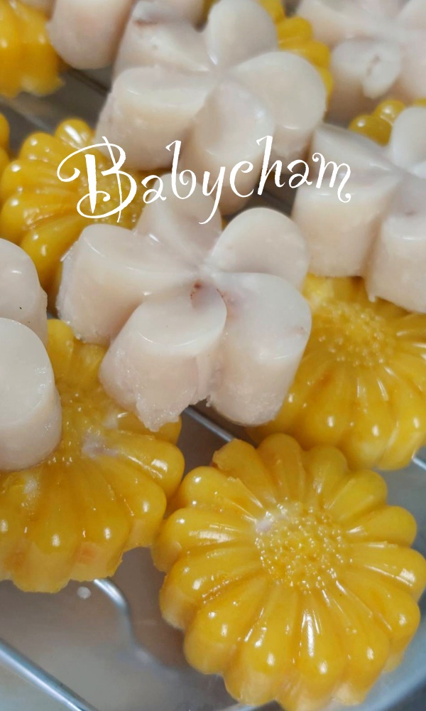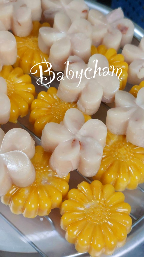 6. นำไปหยอดในพิมพ์(แม่เปป ใช้พิมพ์ซิลิโคน) ระยะเวลา นึ่ง 10-20 นาที ถ้าพิมพ์ใหญ่ หรือ ถาดใหญ่ๆ ก็คงต้องเพิ่มเวลาเอานะคะ