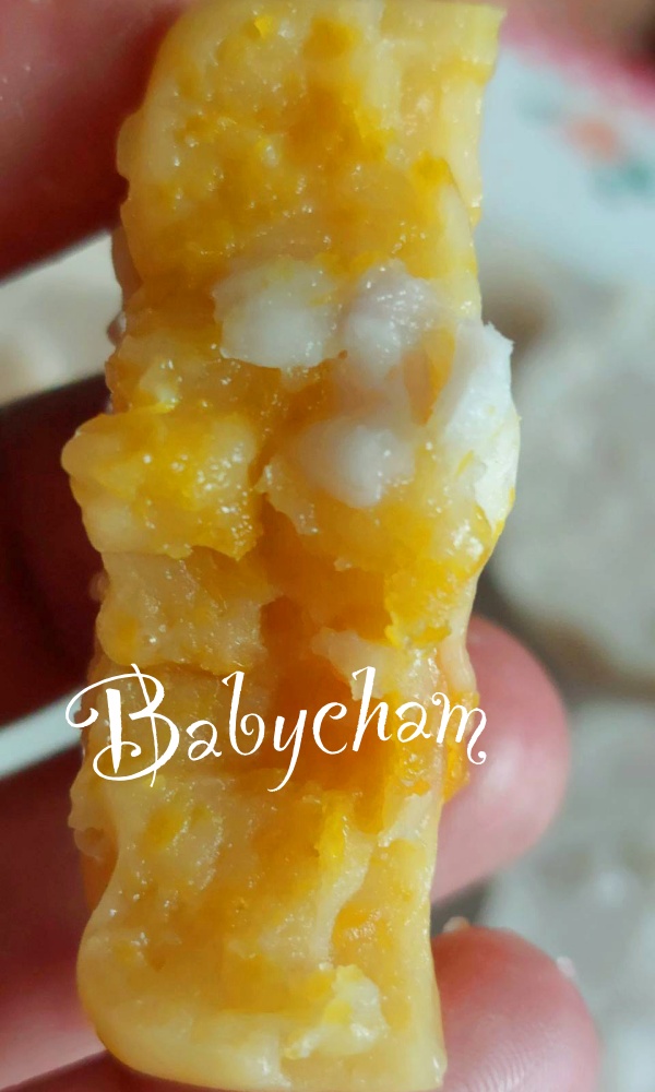 สังเกตุดีๆ มีเนื้อเผือก/ฟักทองชิ้นๆ ใส่รวมกับเนื้อเนียนๆ ละเอียดด้วยละ ขาวๆที่เห็นตัดเหลืองๆ คือมะพร้าวอ่อนๆ หั่นเส้น ผสมลงไปจุกๆด้วย