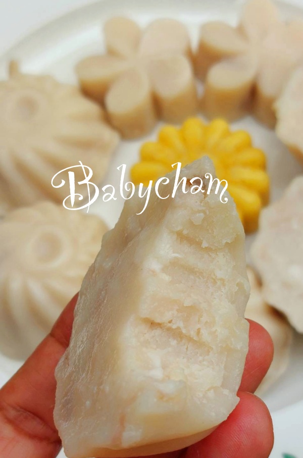7. การนวดนานๆ ทำให้ไขมันในกะทิแตกตัวดี เวลาหยอดในพิมพ์ ไม่ต้องทาน้ำมันอะไรเลย นึ่งเสร็จก็ไม่ติดพิมพ์ด้วยค่ะ