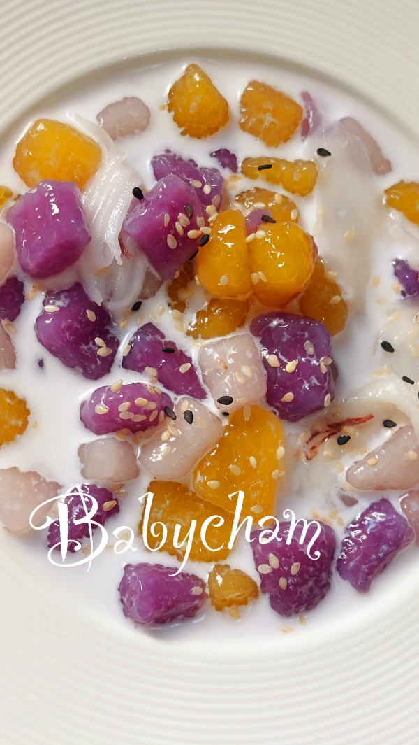 ส่วนเผือกก็มี เผือกบด เผือกชิ้น และมะพร้าวอ่อนผสมเช่นกัน