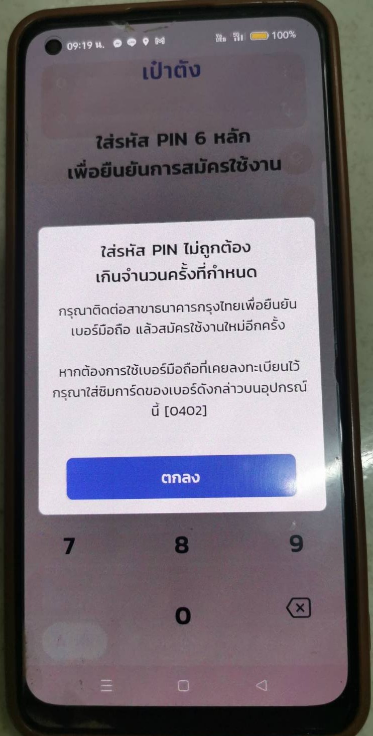 PIN ผิดเกิน 3 ครั้ง เพราะไม่มีให้กดลืมรหัส ตอนนี้สมัครใช้งานใหม่เข้าแอปไม่ได้หน้าจอขึ้นสถานะตามภาพครับ