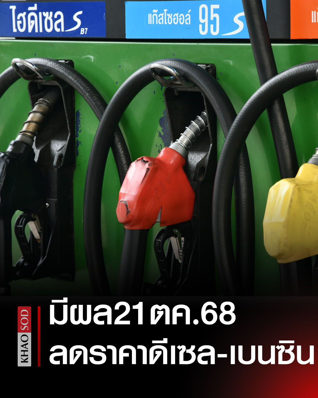 ลดราคาดีเซล 50 สตางค์ต่อลิตร เบนซินลด 30 สตางค์ มีผล 21 ต.ค.68 เพื่อให้ประชาชนได้รับประโยชน์โดยตรงจากการบริหารจัดการราคาพลังงานอย่างทันท่วงที