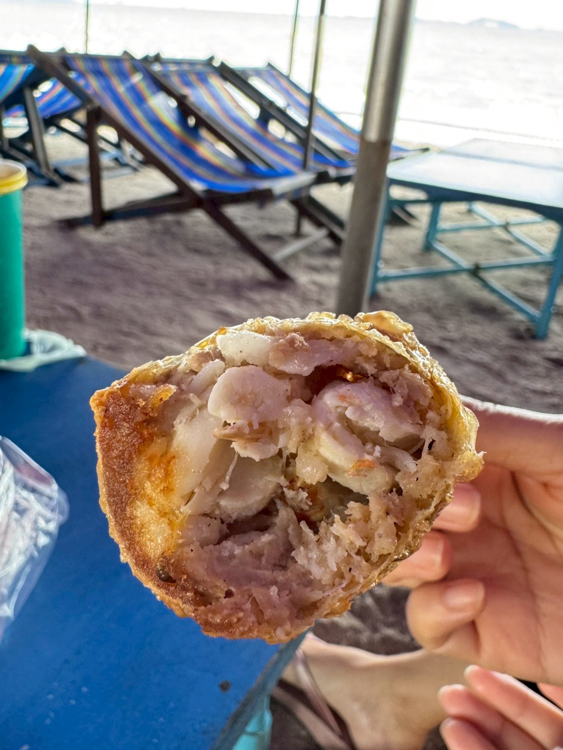 เสร็จแล้วกลับโรงแรม เช็คเอาท์แล้วไปบางแสนครับ อยากนั่งชายหาดกัน แวะซื้อ หอยจ๊อ เจ้าเก่าขาประจำ