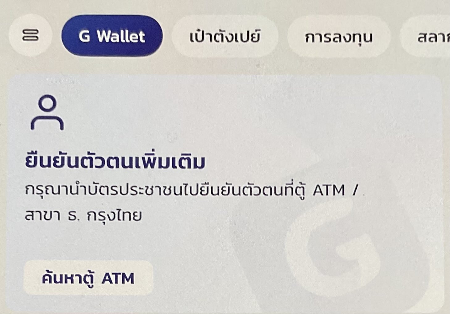 ยืนยันตัวตนที่ตู้ atm แล้วแต่ g wallet มันยังขึ้นว่ายังไม่ได้ยืนยันตัวตน