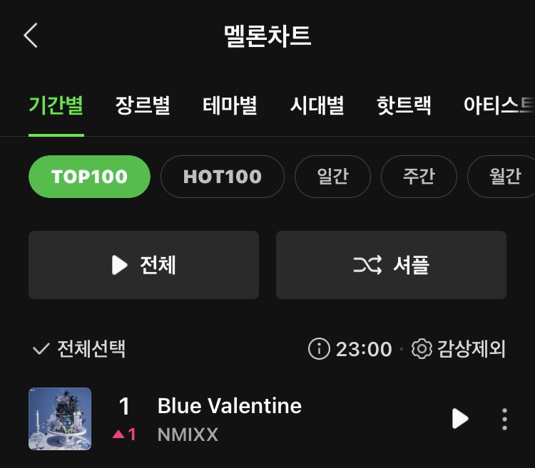 NMIXX, Blue Valentine. ขึ้นสู่อันดับที่ #1 บนชาร์ต MelOn Top100 ได้สำเร็จเป็นครั้งแรก.