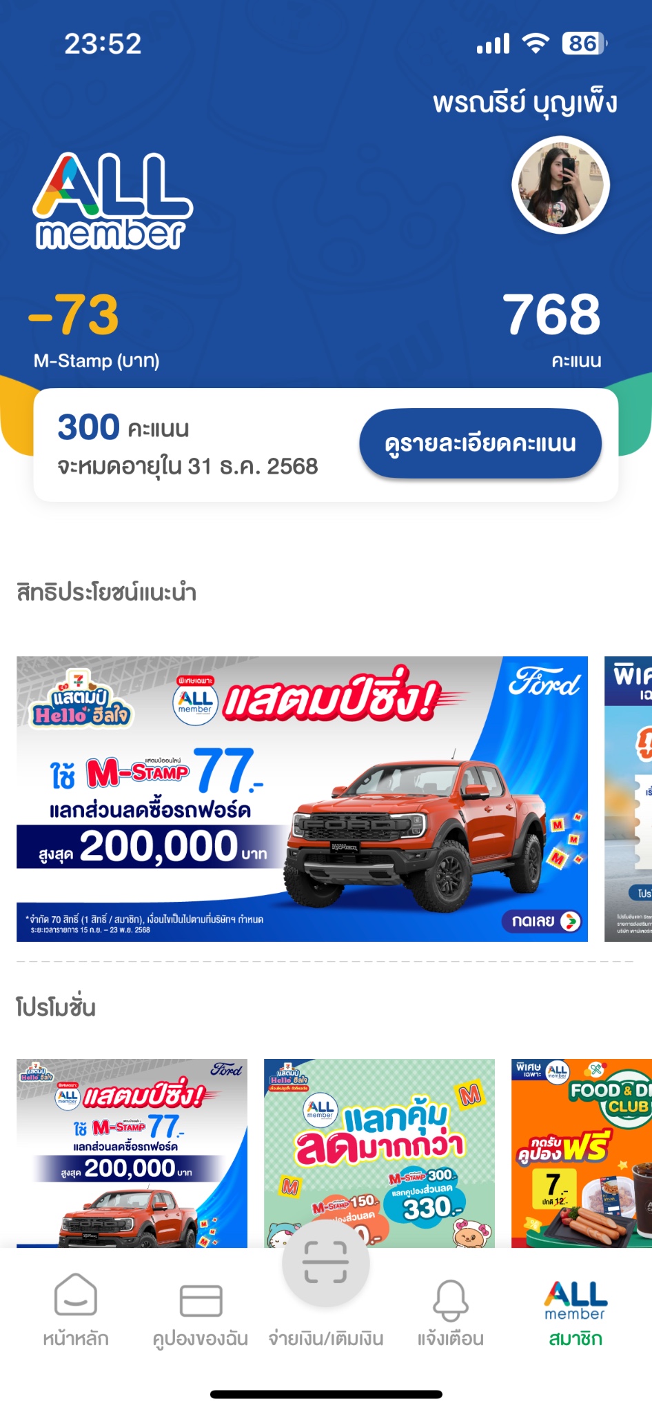 คือญาติเราไปซื้อของที่เซเว่น พร้อมกับสมัคร All Member ครั้งแรกซึ่งจะได้M 30บาท พร้อมกับซื้อสินค้าอื่นๆที่ร่วมรายการที่ได้แสตมป์ แต่ปรากฏว่า Mแสตมป์ไม่ได้เลย ซื้อไปซื้อมาเหลือ4บาทซึ่งจริงๆมันจะได้เยอะก