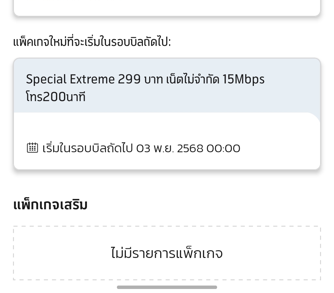 จะไหสมัครแพ็คเกจเสริมอีกคือพึ่งจ่ายรายเดือนไป299฿ใช้ได้แค่4วันหมด.