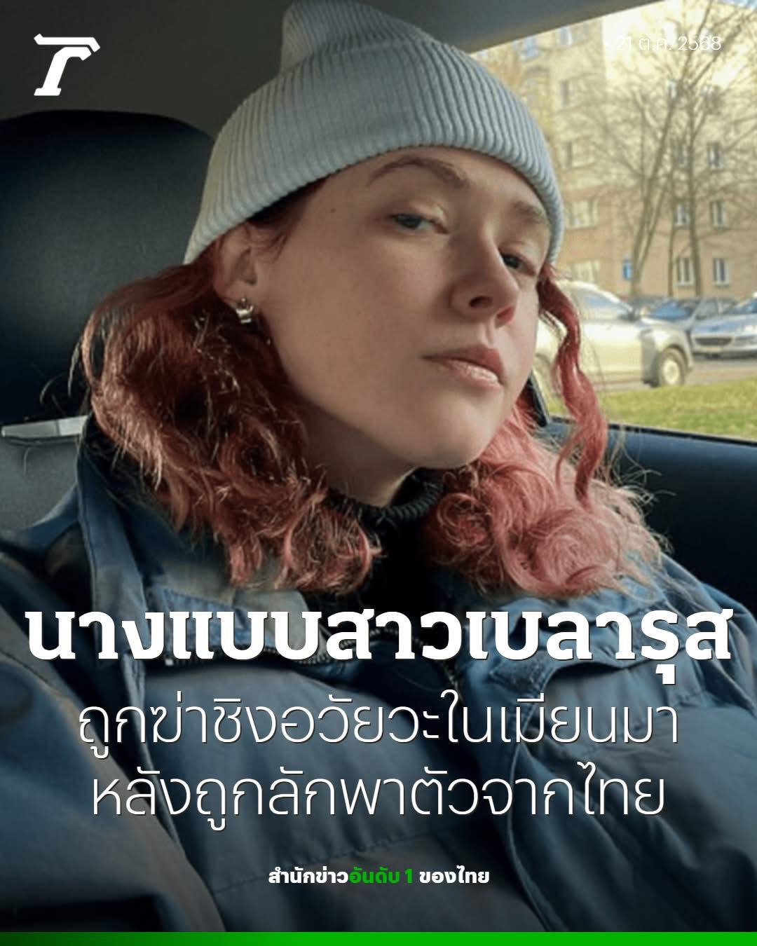 นางแบบสาวชาวเบลารุส ถูกสแกมเมอร์หลอกมาไทย ก่อนถูกลักพาตัวไปเมียนมา พร้อมบังคับให้ทำงานกับแก๊งหลอกลวงออนไลน์ สุดท้ายถูกฆาตกรรมแล้วชิงอวัยวะไปขาย คนร้ายไม่วายเรียกค่าไถ่ศพ