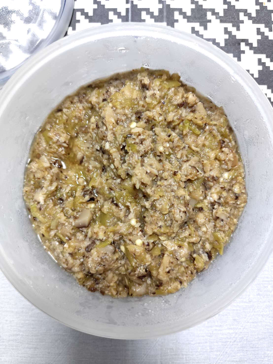 และยังมีน้ำพริกหนุ่มเห็ดหอมเจ ที่ทำเองอีก