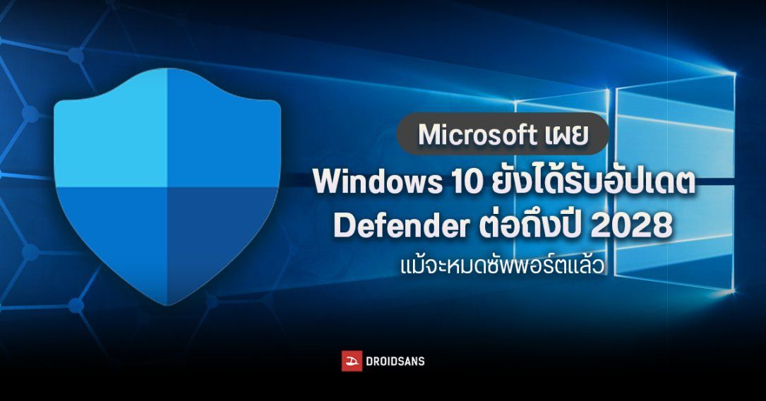 Microsoft เผย Windows 10 ยังได้รับอัปเดต Defender ต่อถึงปี 2028 แม้จะหมดซัพพอร์ตแล้ว
