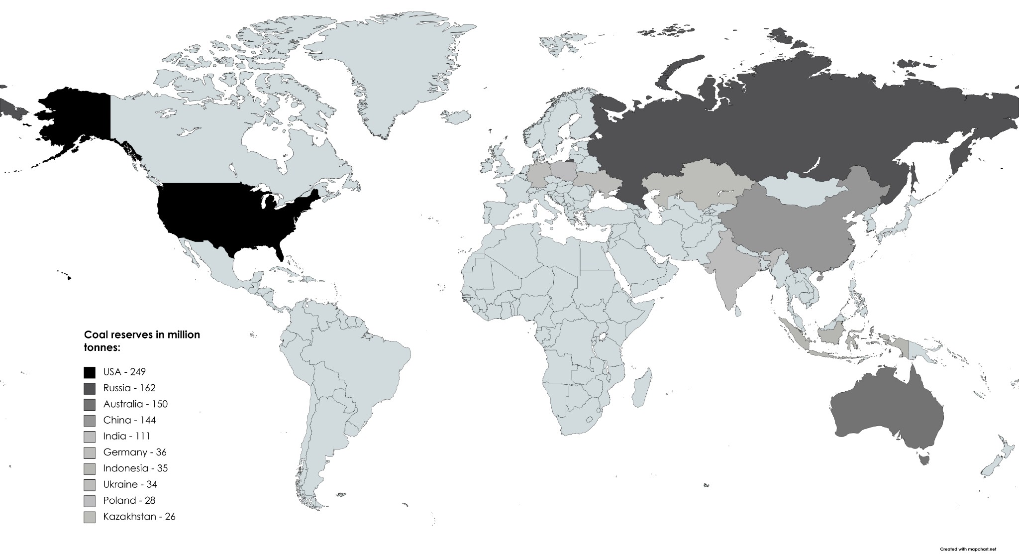 ประเทศใดพึ่งพาถ่านหินมากที่สุด?