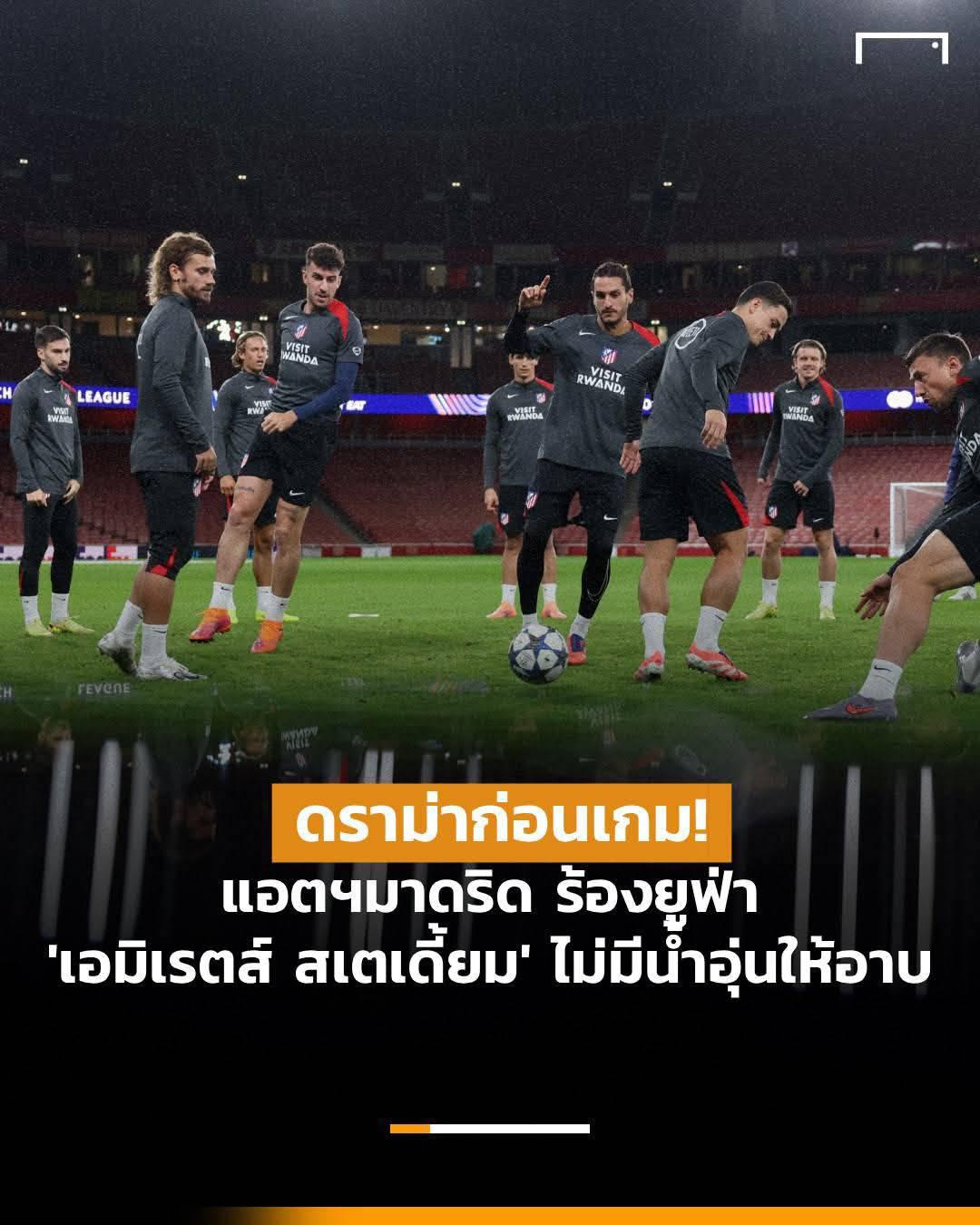 ดราม่าก่อนเกม! แอตฯมาดริด ร้องยูฟ่า 'เอมิเรตส์ สเตเดี้ยม' ไม่มีน้ำอุ่นให้อาบ