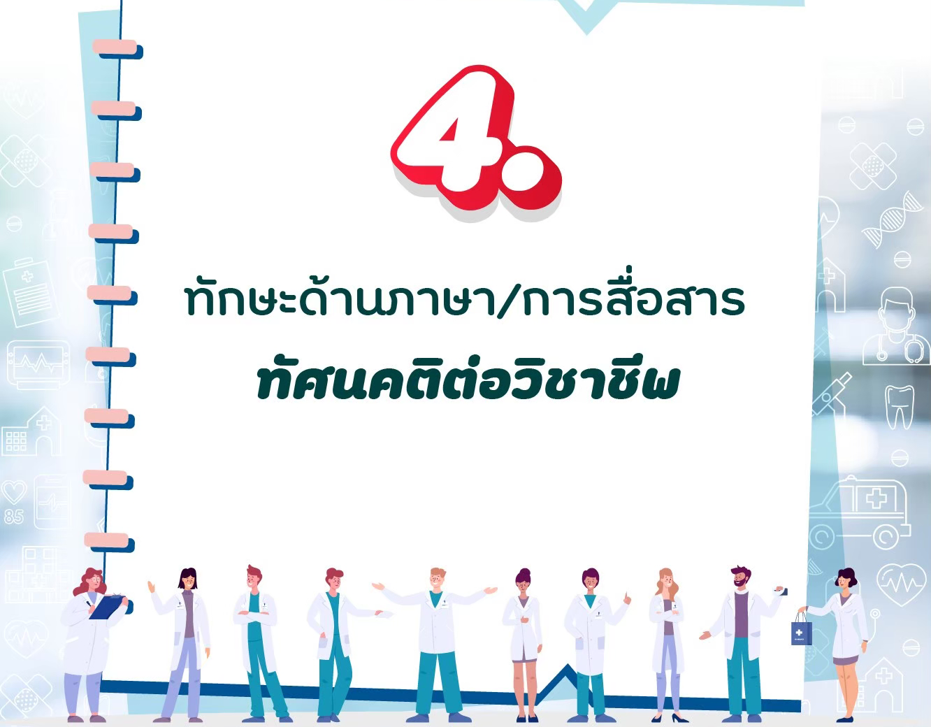 • การใช้ภาษา ทักษะการสื่อสาร และทัศนคติต่อวิชาชีพแพทย์