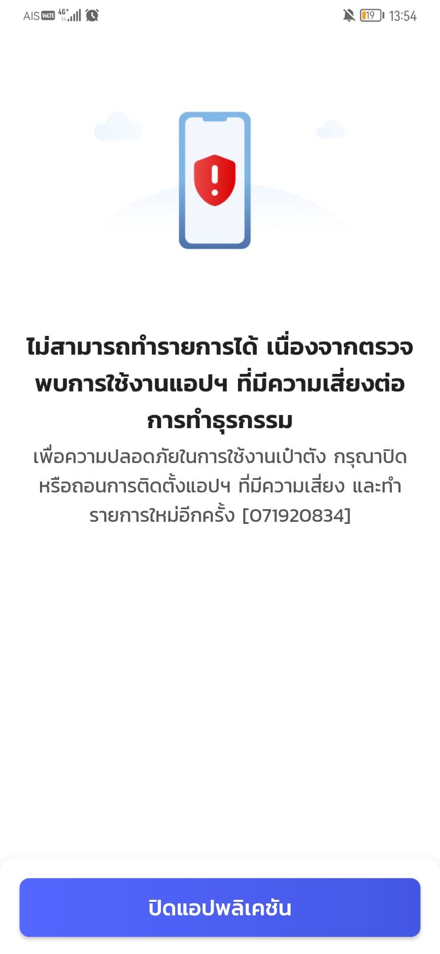 แอปเป๋าตังค์เข้าไม่ได้ รบกวนช่วยหน่อยค่ะ ลองทุกวิธีแล้วยังเข้าไม่ได้ค่ะ ใช้โทรศัพท์ Huawei mate 20 pro