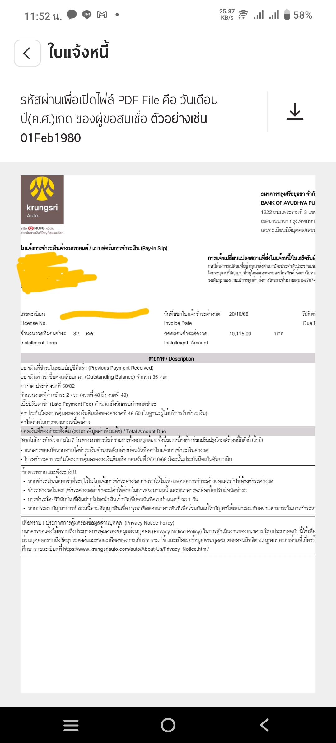 ค่างวดรถยนต์ ธนาคารกรุงศรี